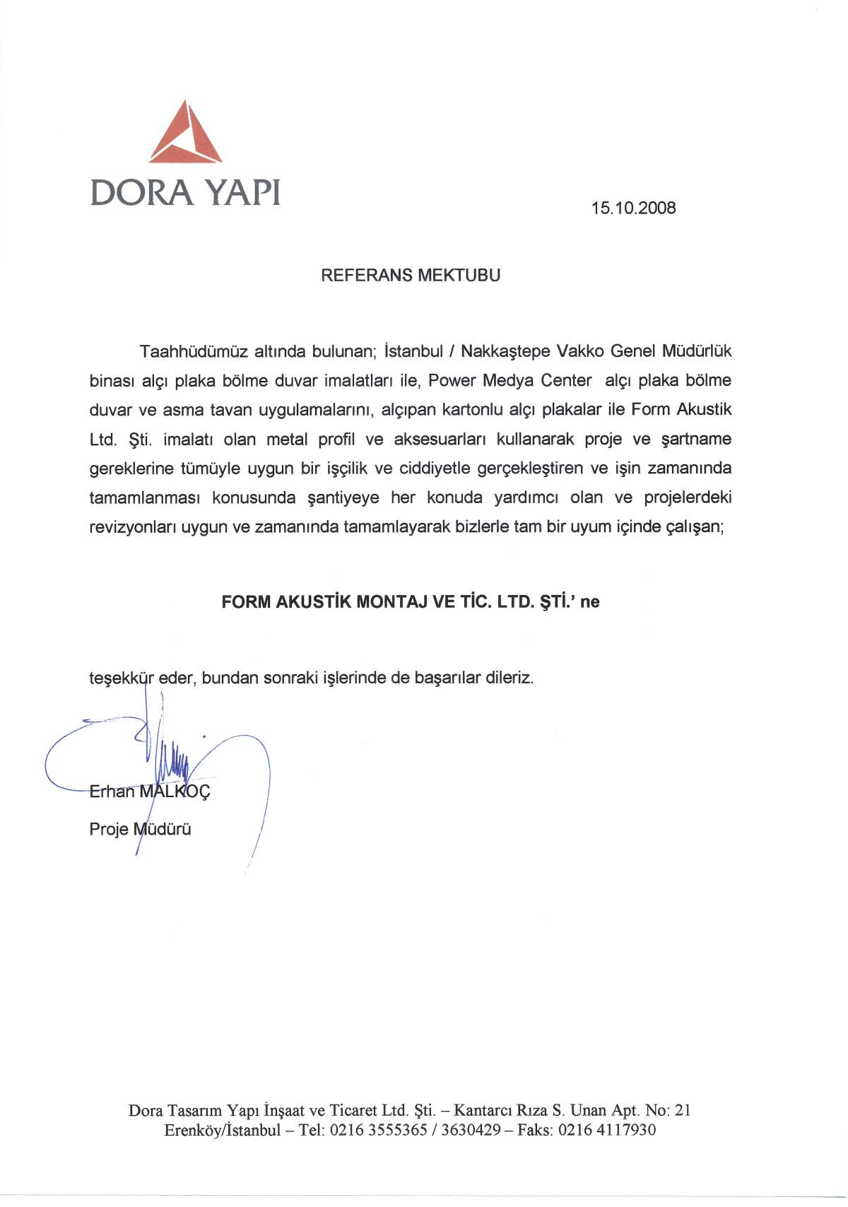 Vakko gen. müd. nakaştepe dora yapi